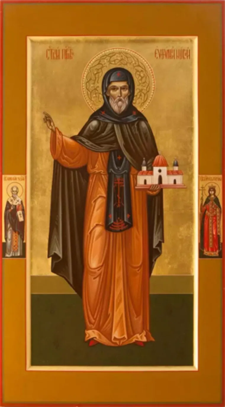 Преподобный Евфимий, в миру Никита, родился в христианской семье в Галатии. По настоянию матери женился, но вскоре оставил дом, принял монашеский постриг на горе Олимп и подвизался в общежительном монастыре.