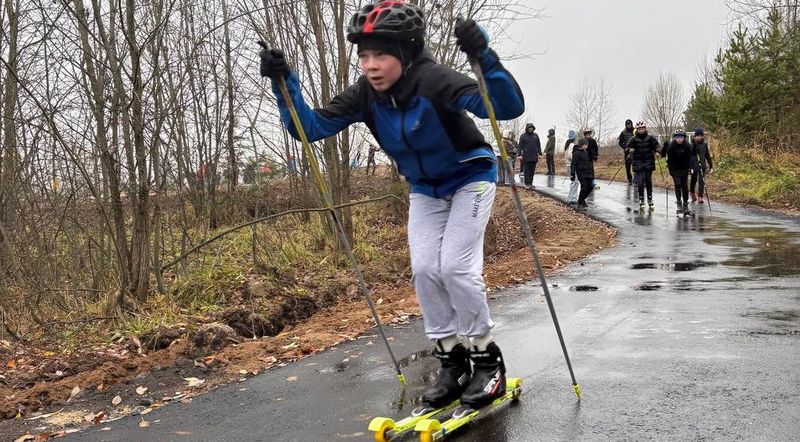 В Ижевске 25 октября несмотря на дождливую погоду открыли лыжероллерную трассу.