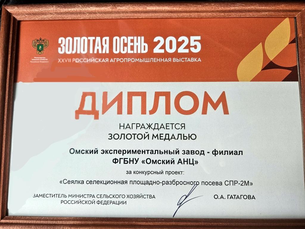 Впервые за многие годы Омский экспериментальный завод (ОЭЗ) удостоен высокой федеральной награды – золотой медали XXVII Российской агропромышленной выставки «Золотая осень – 2025», организованной под эгидой Минсельхоза России.