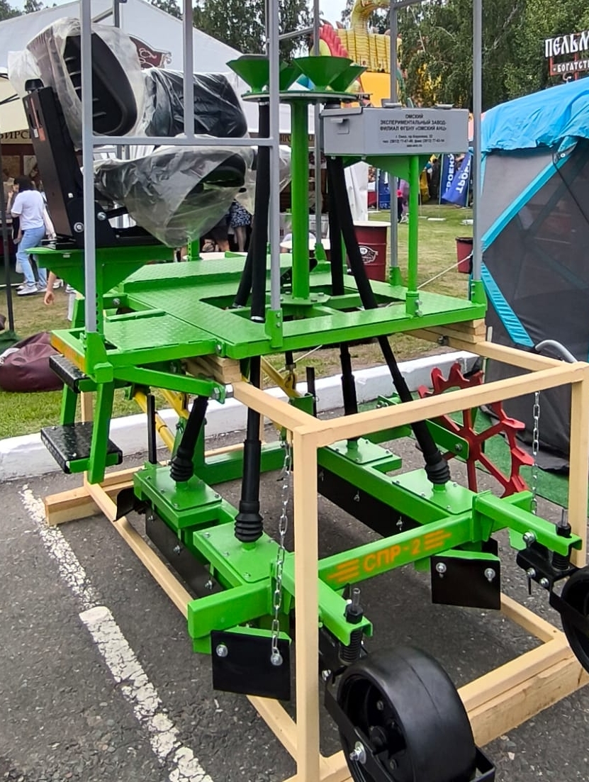 Селекционная сеялка СПР-2М, разработанная отделом механизации и экономических исследований Омского АНЦ и созданная руками инженеров завода,  предназначена для посева семян зерновых, зернобобовых культур и многолетних трав. Работает она в селекционных и семеноводческих питомниках площадно-разбросным способом. При движении сошники заглубляются на глубину посева, снимают слой почвы и отодвигают его в сторону, образуя борозду более 100 мм. С помощью специального поворотного механизма семена через конусы-распределители равномерно рассыпаются на дне борозды. Затем борозда прикрывается почвой, а  сверху обрабатывается прикатывающими колесами. При каждой остановке сеялка высевает четыре делянки.