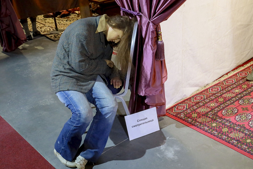 Сразу на входе вас встречает охранник. Он настолько похож на человека, что некоторые гости с ним здороваются. Рядом, у стойки администратора, расположилась мадам Тюссо — основательница известного лондонского музея. Среди других примечательных «сотрудников» — спящая смотрительница и рабочий сцены.