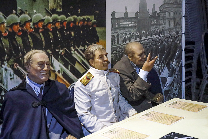 Целый раздел выставки посвящён политическим деятелям. Франклин Рузвельт, Иосиф Сталин и Уинстон Черчилль обсуждают важные вопросы на Ялтинской конференции. Дополняет композицию армейский автомобиль Willys MB. Эту модель выпускали с 1941 по 1945 год специально для военных нужд.