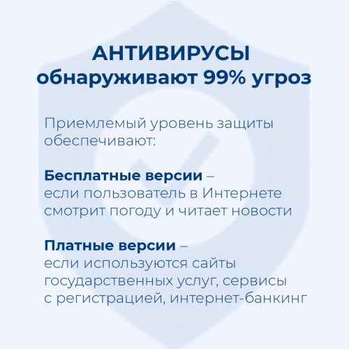 Выбирайте решения от авторитетных разработчиков ПО, но главное – чтобы антивирусные базы регулярно обновлялись. Приемлемый уровень защиты могут обеспечить и бесплатные версии, если условный пользователь в Интернете только смотрит погоду и читает новости. Если же он пользуется сайтами государственных услуг, сервисами с регистрацией и интернет-банкингом, лучше использовать платный антивирус: стоимость подписки в разы меньше стоимости восстановления системы. Особенно это касается детей и подростков, которые, не задумываясь, скачивают и устанавливают надстройки и скрипты (читы) к популярным компьютерным играм.