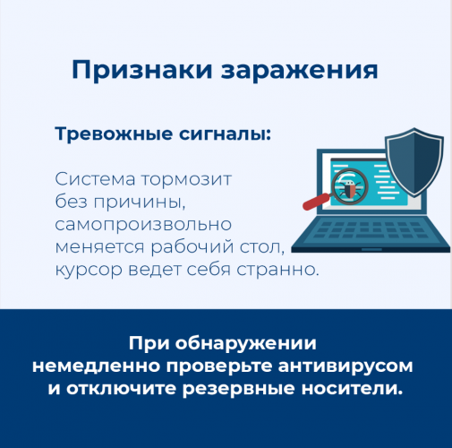 Признаками заражения могут быть торможение системы, смена рабочего стола или необычное поведение курсора.