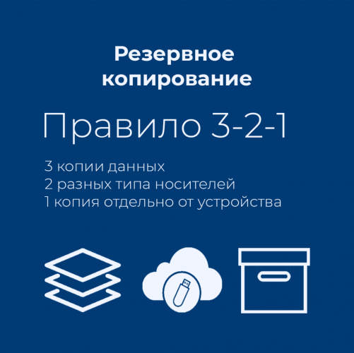 Для системных администраторов есть правило, применимое и для обычных пользователей: хранить три копии данных, две из них – на разных типах носителей (например, USB – жёсткий диск и облако).