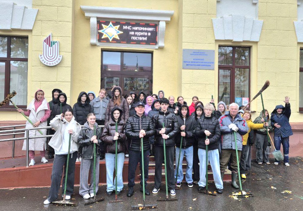 Актив студенческого профсоюза Минского филиала УО “Белорусский торгово-экономический университет потребительской кооперации” совместно со своими преподавателями и во главе с директором филиала, Олегом Левшуновым, приняли участие в субботнике и навели порядок на территории учебного заведения.