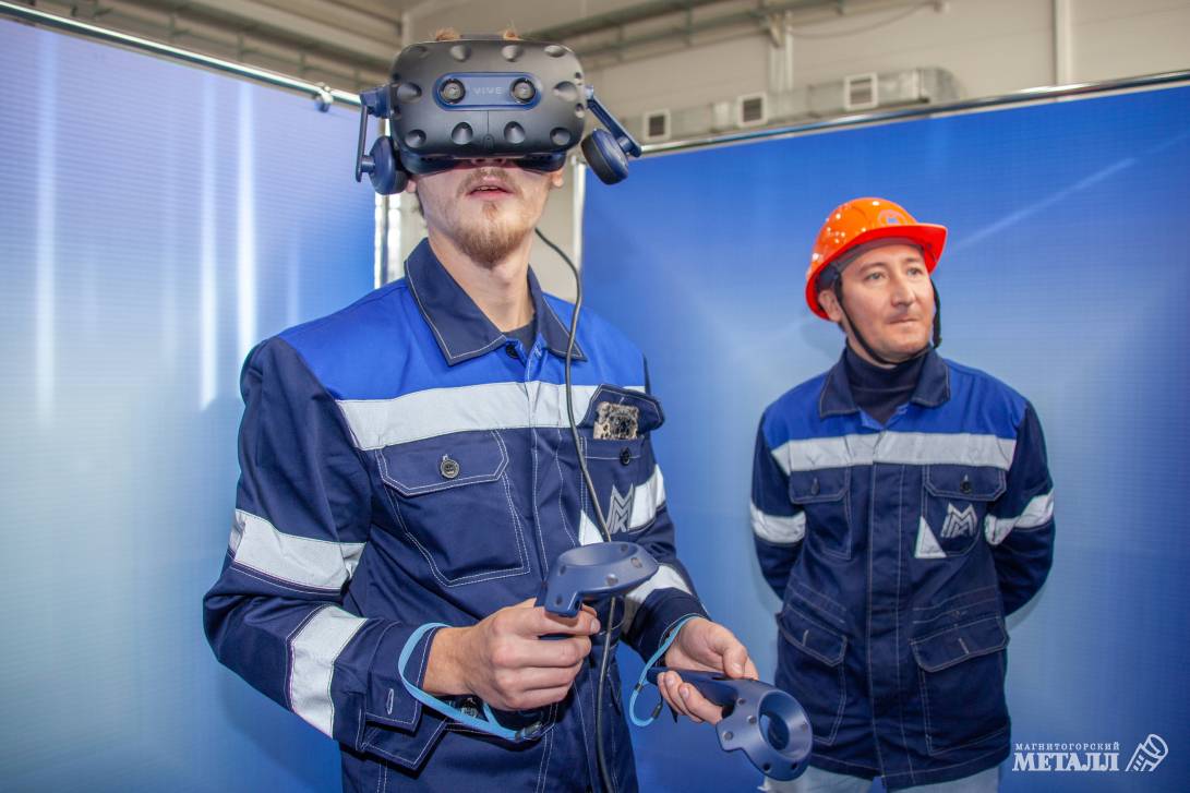 Практическая часть состояла из нескольких этапов, проходить которые конкурсанты могли в произвольном порядке. Один из этапов – выявление нарушений требований охраны труда на производственных участках по шести различным локациям комбината. Причём перемещаться для этого участникам никуда не требовалось. С помощью VR-тренажера они могли попасть в ККЦ, коксовый и локомотивный цехи, на участки десятого и одиннадцатого листопрокатных цехов.
