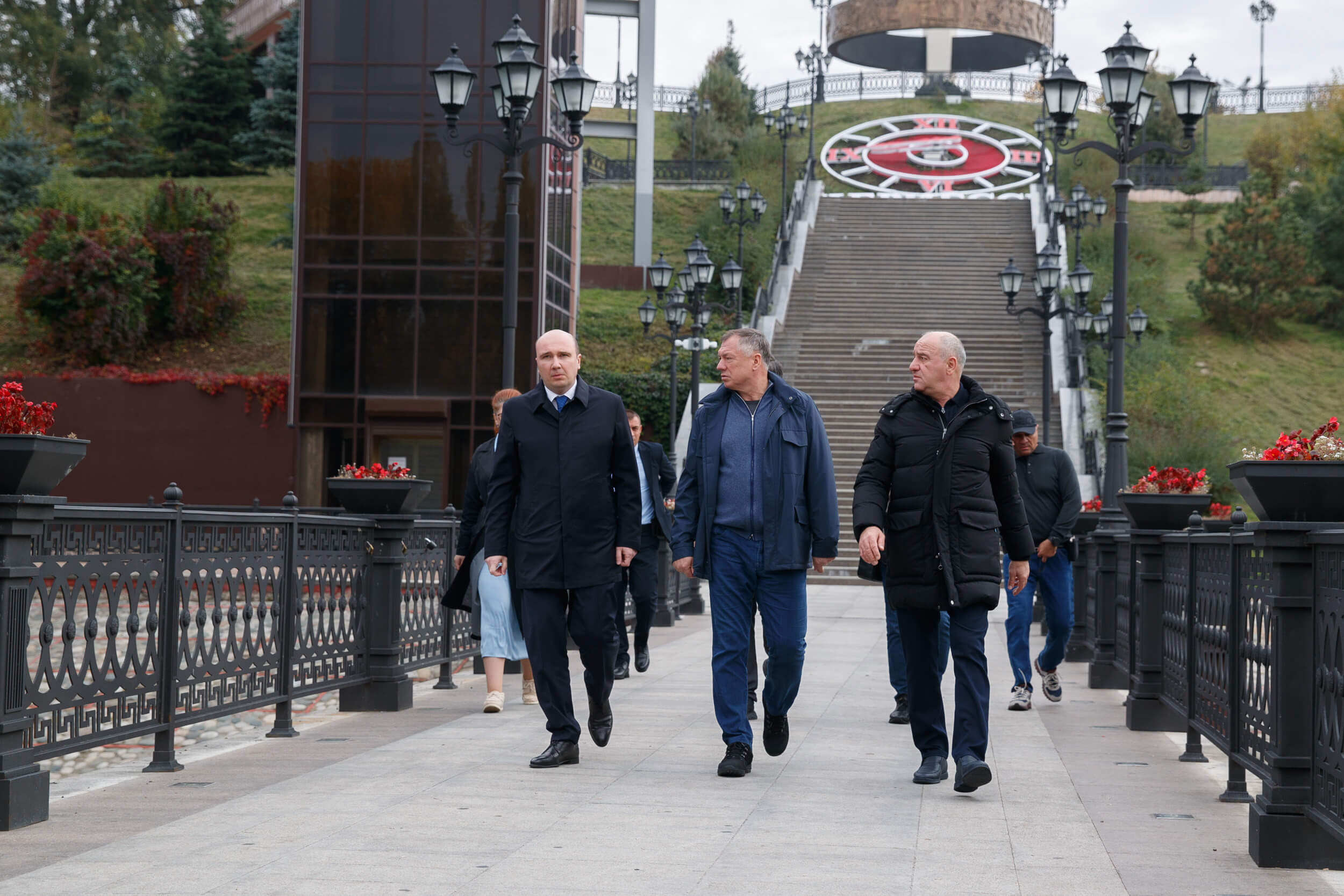 Вице-премьер России Марат Хуснуллин, Глава КЧР Рашид Темрезов и мэр Черкесска Алексей Баскаев побывали на Малом пруду, благоустройство которого стало возможно благодаря победе во Всероссийском конкурсе «Малые города и исторические поселения».