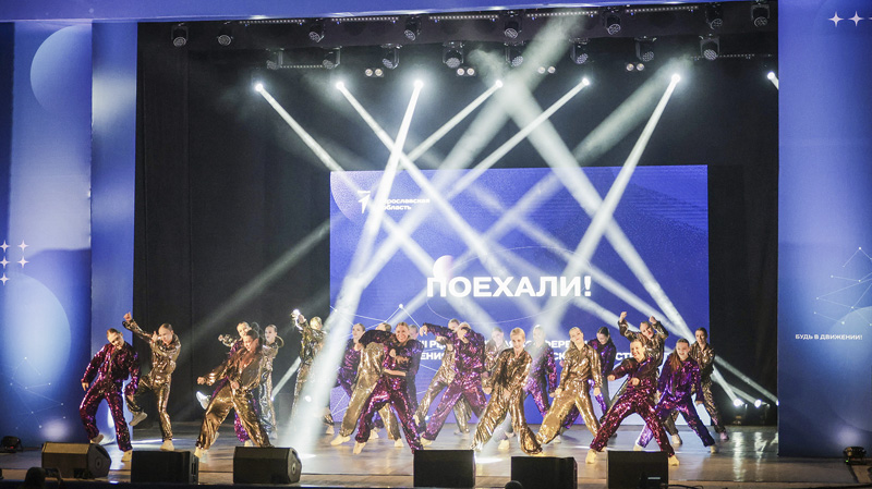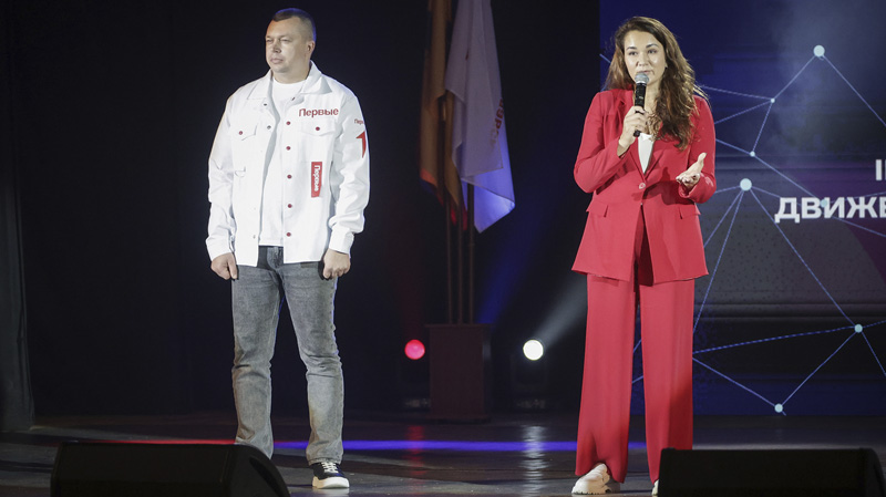 Руководитель всех Первых поднялся на сцену под громкие аплодисменты. Его сопровождала зампредседателя правительства Ярославской области Вера Даргель.