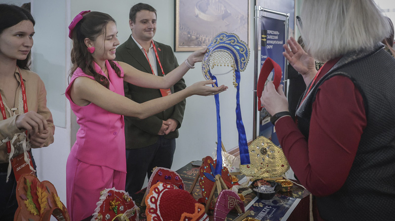 Голосовалки за самый красивый кокошник от Переславля-Залесского, фотозона с «живым» Федором Ушаковым за штурвалом, виртуальная реальность от Ярославля, мастер-класс по креативности от победительницы конкурса «Палитра Первых» из Мышкина Виталины Ермолиной: скучать делегатам было некогда. Тем временем большой зрительный зал «Авиатора» начал заполняться. Оставались считанные минуты до торжественного старта.