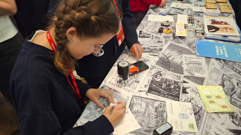 Кураторы отделений постарались привести на конференцию что-нибудь особенное, максимально отражающее их деятельность. Такие «фишки» — краеведение, спорт, изобразительное искусство и другое, они выбирают сами: у Движения целых 12 направлений работы. За столом стенда Гаврилов-Ямского округа девушка старательно заполняет открытку и готовится опустить ее в зев синебокого почтового ящика.