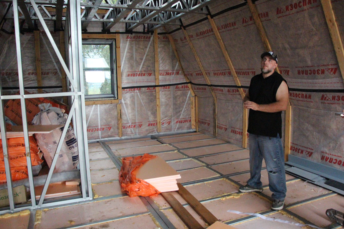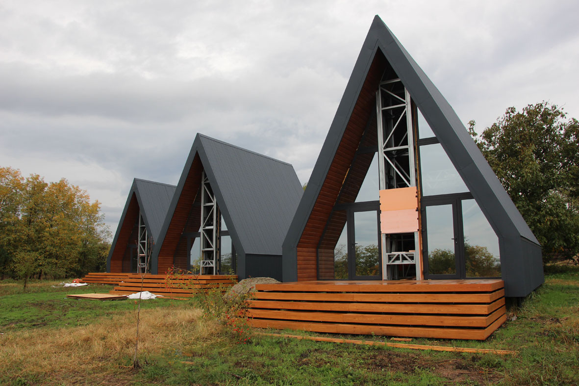 Все строения сделаны из ЛСТК-каркаса (легкие стальные тонкостенные конструкции). Несмотря на то, что большинство домиков, предназначенных для глэмпинга, сделаны из дерева Новосельцев отказался строить из этого материала.