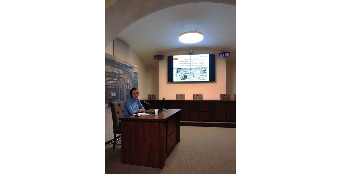 Дом русского зарубежья им. А.Солженицына представляла главный библиотекарь сектора обслуживания читателей и библиографии отдела «Библиотека», кандидат педагогических наук Н.А.Егорова, выступившая с докладом «Книги с экслибрисами из коллекции Мартина Винклера в библиотеке Дома русского зарубежья им. А.Солженицына». В своем выступлении Егорова рассказала об уникальных изданиях с экслибрисами из библиотеки немецкого историка-русиста, знатока древнерусской культуры и искусства Мартина Винклера, хранящихся в фонде Дома русского зарубежья, их дарителе С.Н.Крикорьяне, владельце М.Винклере и авторе экслибриса, художнике Алексее Ильиче Кравченко. Помимо экслибриса в библиотеке Дома русского зарубежья хранится несколько книг с гравюрами А.И.Кравченко на обложке.
