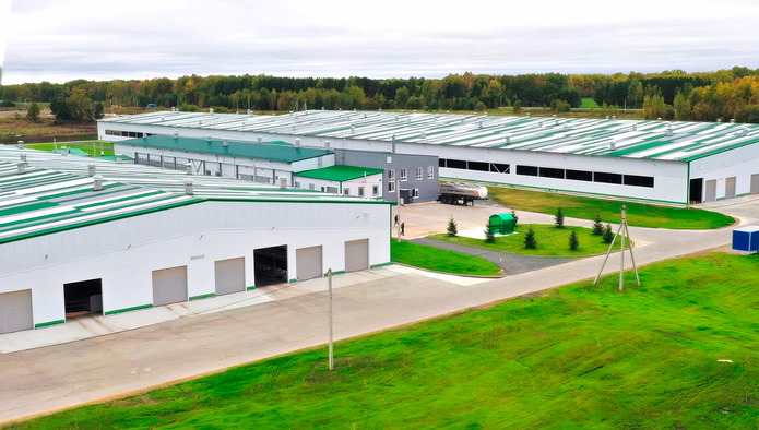 В новый комплекс входят два коровника площадью почти 11 тыс. кв. метров каждый, доильный зал «Карусель», оснащенный системами автоматического снятия доильных аппаратов, родильное отделение, где одновременно могут находиться 319 коров, и кормоцентр.