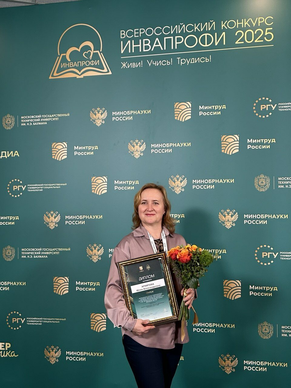 Доцент кафедры физической культуры Юлия Александровна Архипова вошла в пятерку сильнейших в номинации «Педагог-предметник в высшем образовании инвалидов и лиц с ОВЗ».