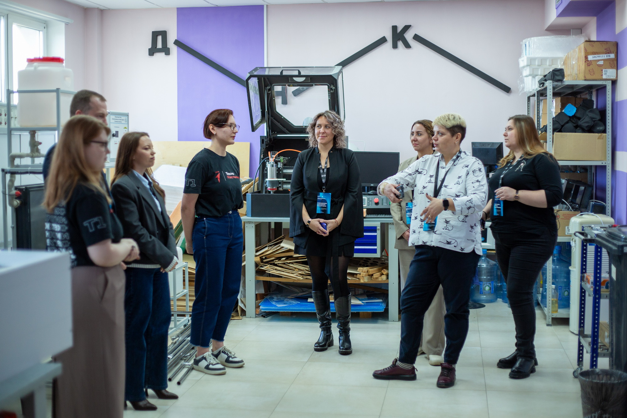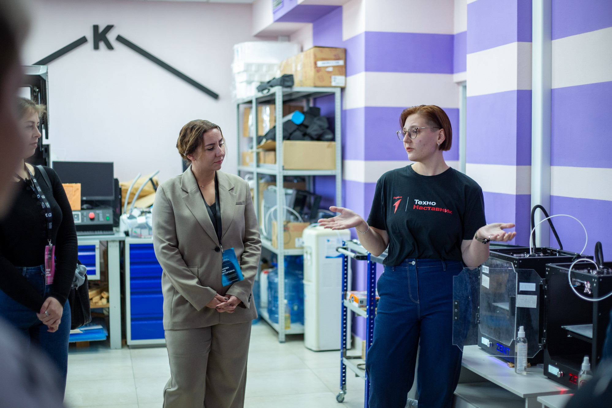 Второй день семинара начался с проектной сессии по «ТехноНаставникам», затем состоялась экскурсия, направленная на демонстрацию архитектурной и информационной доступности в инклюзивном пространстве НГТУ НЭТИ, после чего участники мероприятия отправились в гости к молодым ученым — в студенческое конструкторское бюро и студенческие лаборатории. В стартап-центре НГТУ НЭТИ REACTOR был продемонстрирован опыт молодежного предпринимательства — студенческие кейсы и проекты в рамках акселератора. На экскурсии по молодежному пространству НГТУ НЭТИ «35 Дом» представителям вузов рассказали о деятельности 16 студенческих объединений.