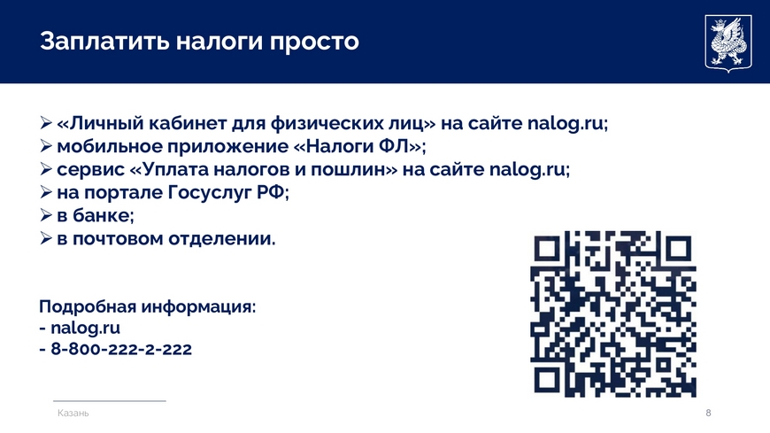 Заплатить налоги можно несколькими способами: через «Личный кабинет налогоплательщика» (на сайте ФНС), мобильное приложение «Налоги ФЛ», с помощью сервиса «Уплата налогов и пошлин» (на сайте ФНС), на портале Государственных услуг РФ, в банках и почтовых отделениях.