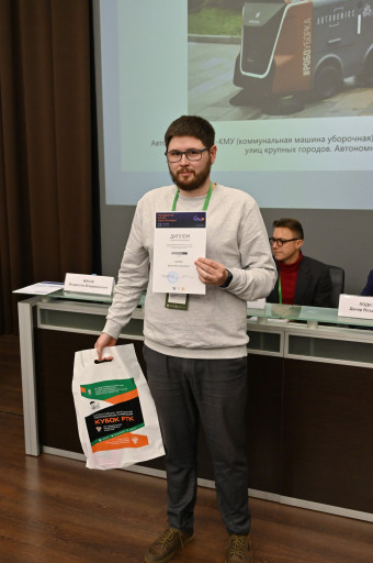 РГАУ-МСХА имени К.А. Тимирязева на конференции достойно представил Валентин Панов, аспирант первого года обучения кафедры автоматизации и роботизации технологических процессов имени академика И.Ф. Бородина Института механики и энергетики имени В.П. Горячкина. Его научным руководителем является кандидат технических наук, доцент Евгений Адимович Шабаев.