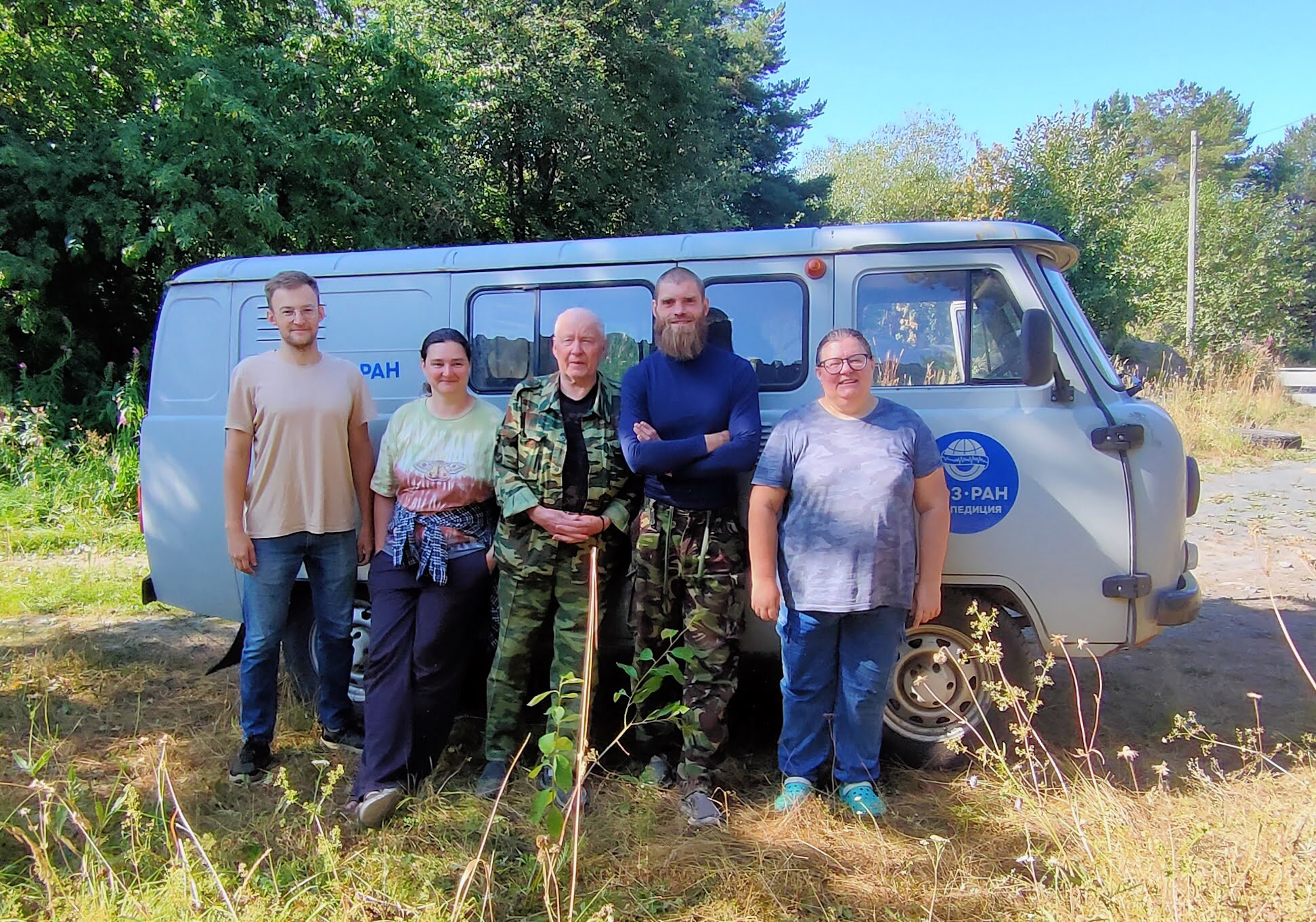 Экспедиционный отряд лаборатории спутниковых методов изучения геофизических процессов ИФЗ РАН с сотрудником Ботанического сада Петрозаводского Государственного университета.