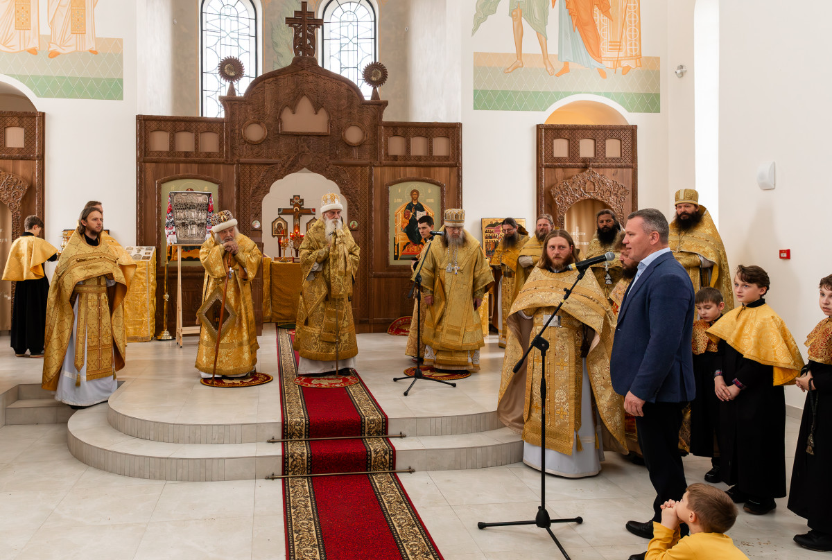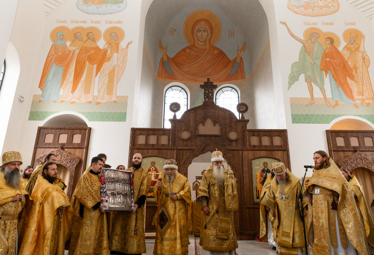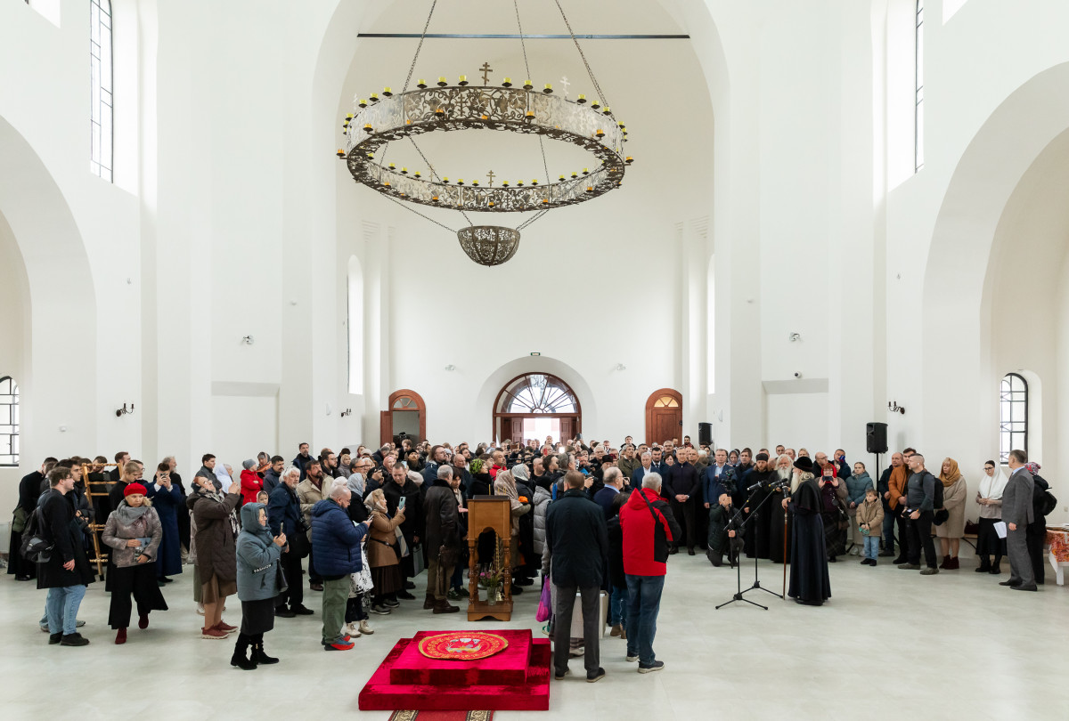 Сегодня белокаменный собор встречает гостей колокольным звоном. На его фасадах три мозаичных полотна. Внутри — дубовый иконостас и фрески. В субботу, 25 октября, перед самым освящением храма состоялось его торжественное открытие, собравшее в том числе представителей власти и организаций, принявших участие в реставрации. Митрополит Корнилий в приветственном слове поблагодарил всех причастных и вручил благодарственные адреса.