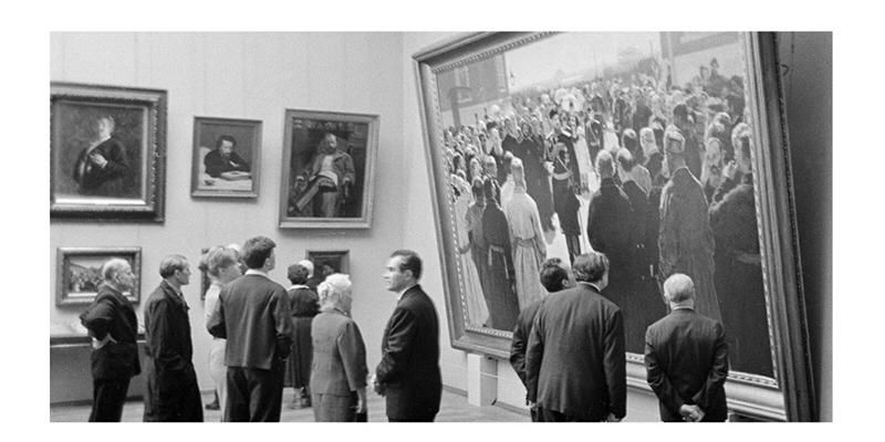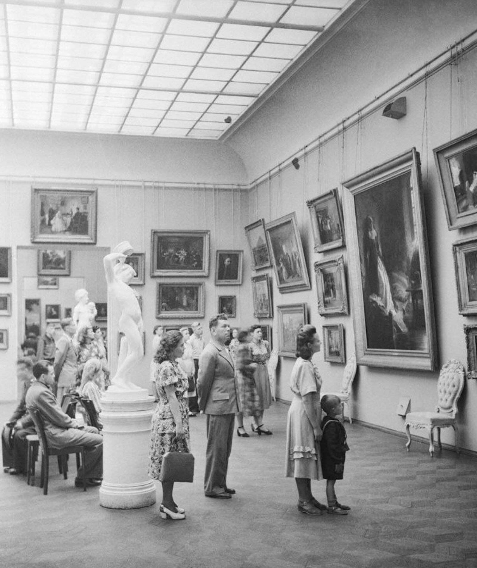 Посетители Государственной Третьяковской галереи осматривают выставку живописных, скульптурных и графических произведений русского дореволюционного искусства. Автор Э. Евзерихин. Москва. 6 апреля 1962 г. Главархив Москвы