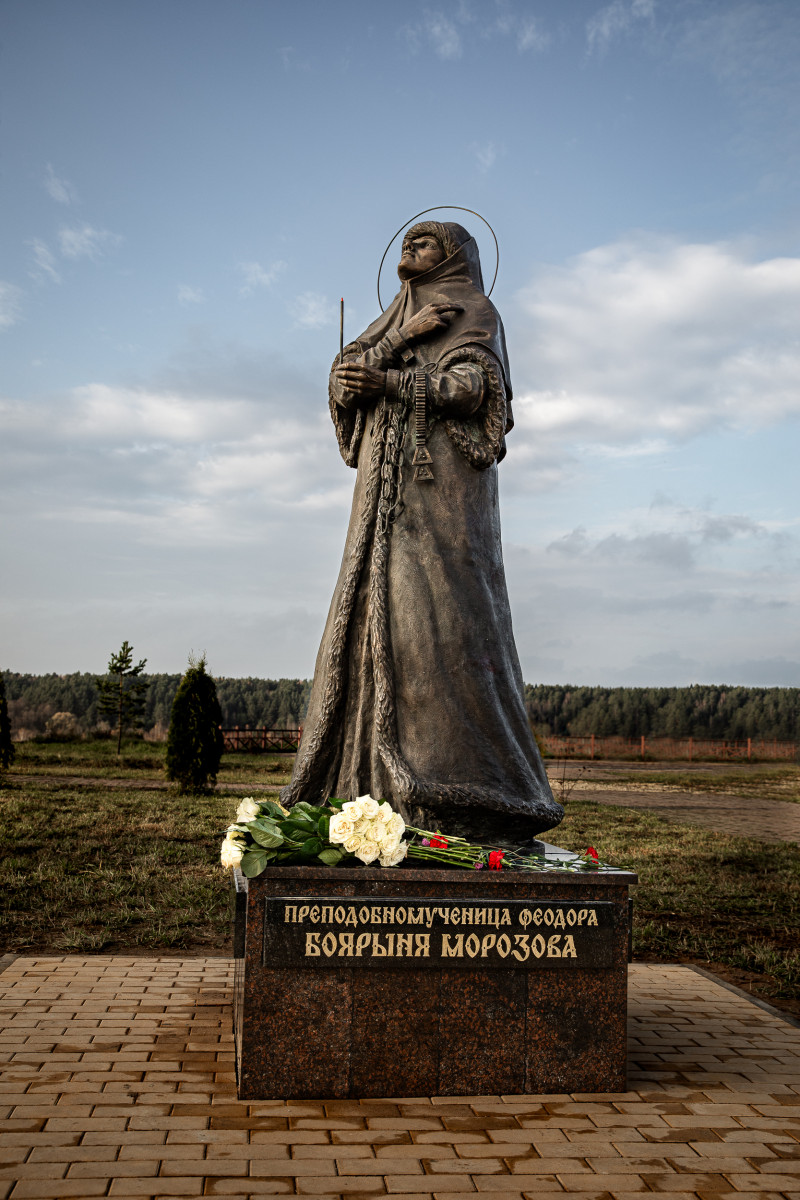 Одним из торжественных мероприятий в Боровске 25 октября стало открытие памятника преподобномученице Феодоре (боярыне Морозовой). Монумент расположен на площади рядом с Покровским собором неподалеку от памятника священномученику и исповеднику Аввакуму. Автор обоих монументов — скульптор, заслуженный художник России академик Российской академии художеств Олег Иванович Молчанов.