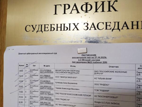 Председательствующий судья Денис Пирожков в конце заседания Девятого апелляционного арбитражного суда 27 октября 2025 г. объявил, что у ответчиков есть 60 дней на подачу кассационной жалобы. Срок обращения в третью судебную инстанцию следует из статьи 276 АПК РФ, которая гласит: "Кассационная жалоба может быть подана в срок, не превышающий двух месяцев со дня вступления в законную силу обжалуемых судебного приказа, решения, постановления арбитражного суда".