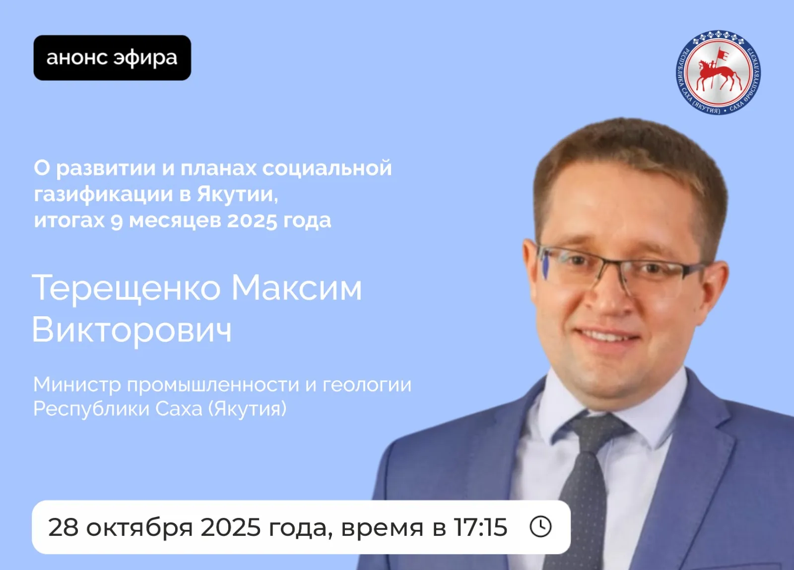 Министр промышленности и геологии Республики Саха (Якутия) Максим Терещенко 28 октября проведет прямой эфир на официальных страницах Администрации Главы и Правительства республики. Трансляция начнётся в 17:15 в социальных сетях «ВКонтакте» и «Одноклассники».