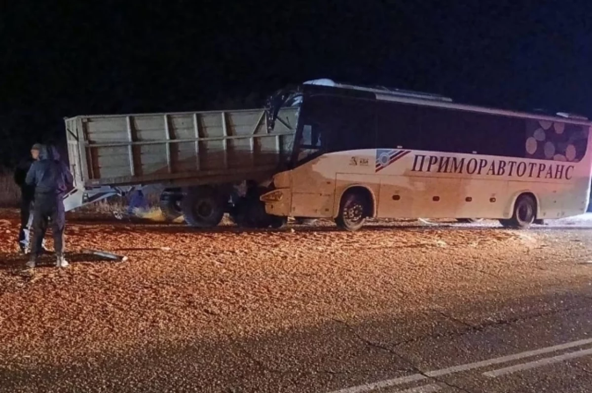 Серьезное дорожно-транспортное происшествие с участием международного автобуса и большегруза произошло минувшей ночью 28 октября на автодороге «Уссурийск — Пограничный — Госграница». Автобус, перевозивший китайских туристов, на полном ходу врезался в прицеп зерновоза, стоявший на проезжей части. В результате ЧП пострадали восемь человек, возбуждено административное дело.