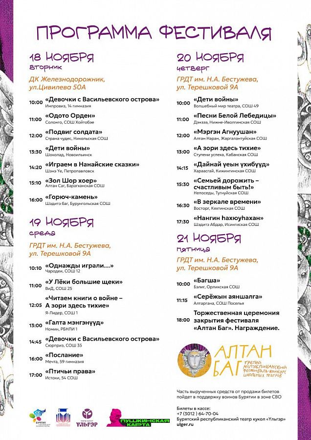 В афише фестиваля-конкурса представлены 24 постановки, созданных школьными коллективами из г. Улан-Удэ и районов республики.