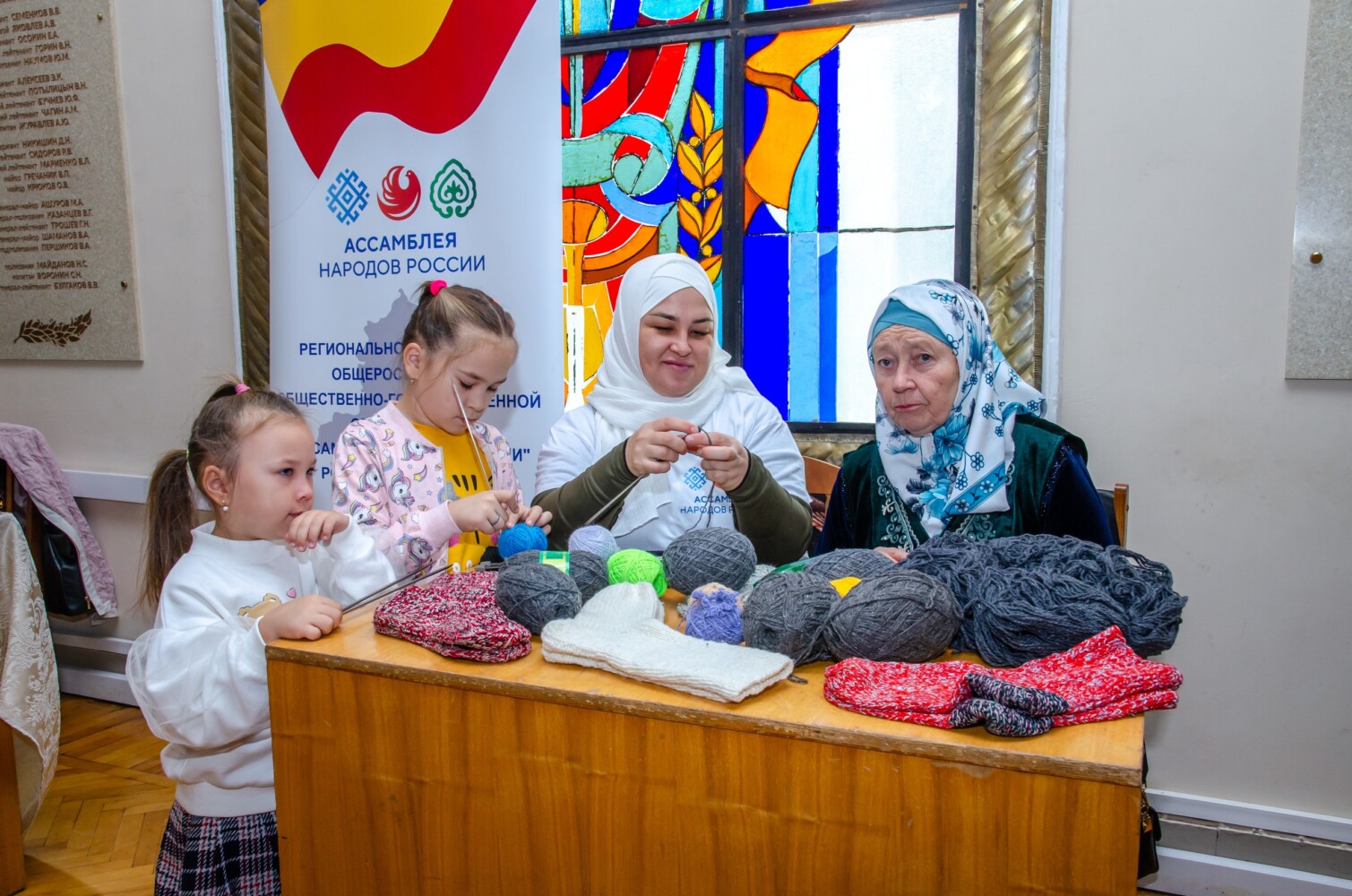 С самого начала фойе Дома Офицеров превратилось в настоящий центр народной помощи. Гости с огромным воодушевлением участвовали в практических мастер-классах «Помощь фронту»: женщины и молодежь плели маскировочные сети на «Узелке Победы», дети и взрослые собирали наборы «Сухой душ» и мастерили «Подушки для защитников», а в уголке «Тепло из родного дома» создавались вязаные вещи, каждая из которых была наполнена заботой и любовью. Одновременно работала фотовыставка «Герои среди нас», лица на которой напоминали каждому о настоящей цене мирного неба.