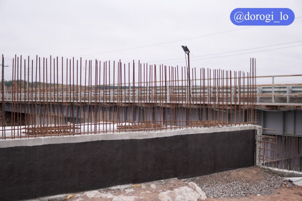 На мосту через реку Черкасовка работы также не останавливаются. Уже сейчас здесь выполнены работы по устройству опор, идет подготовка к монтажу балок.