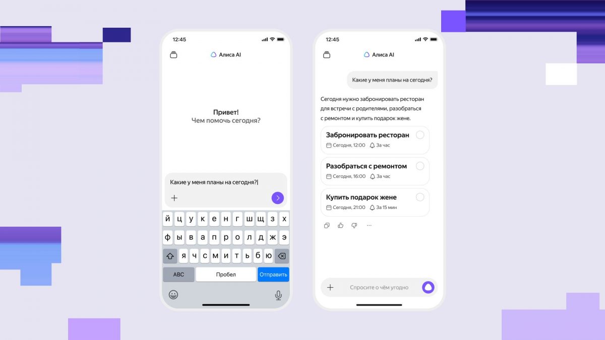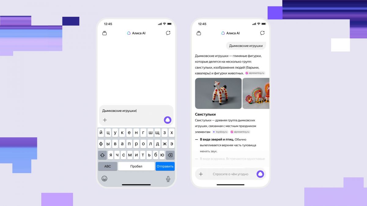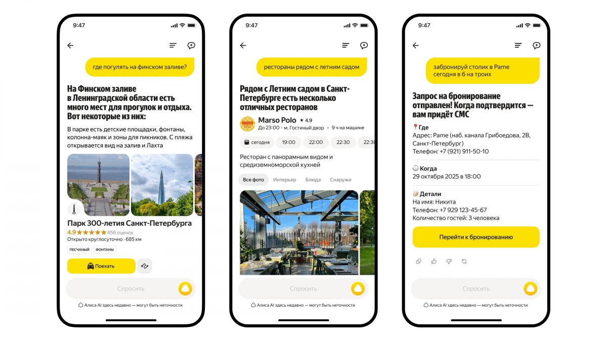 Главный анонс — новая универсальная нейросеть Алиса AI, которая решает самые разные задачи. Она не просто отвечает текстом, а формирует развернутые ответы с картинками, видео, ссылками и данными из Яндекс Карт.