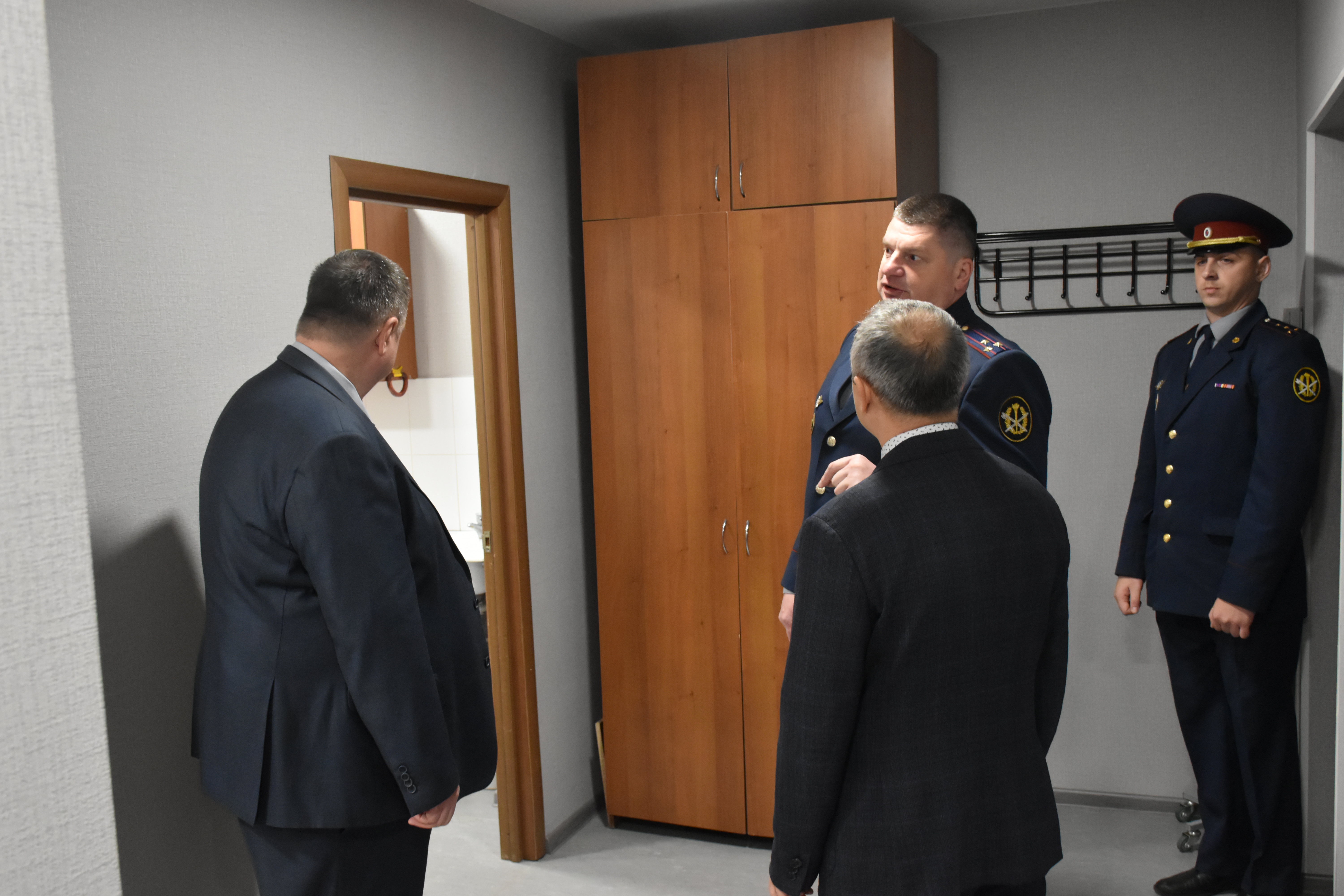 Далее заместитель прокурора ознакомился с учебно-тренировочным комплексом, где ему были подробно представлены методики подготовки курсантов для «реальной» службы в исправительных учреждениях. Ему были продемонстрированы специальные устройства и средства, используемые для проведения обысков и досмотров, а также система распознавания лиц, применяемая в учреждениях УИС.