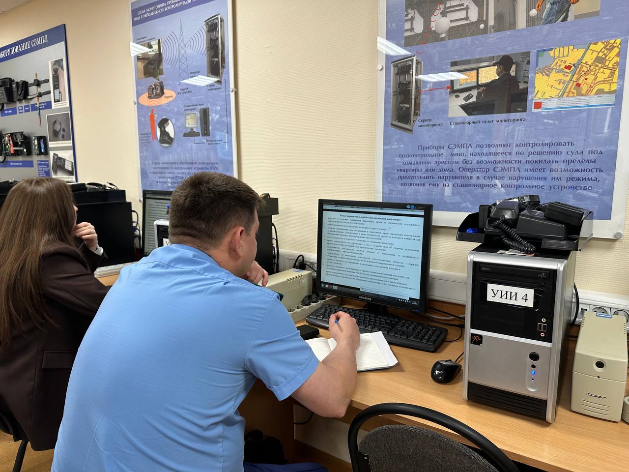 Для заместителя прокурора была проведена ознакомительная экскурсия по институту, которая началась с посещения класса специальной техники. Здесь Евгению Петренко были продемонстрированы современные образцы техники, применяемой для контроля за осужденными, отбывающими наказание без изоляции от общества. Особое внимание было уделено электронным средствам надзора и контроля за осужденными.