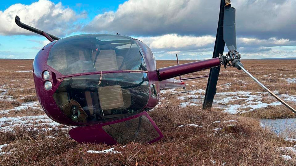 На Камчатке обнаружили вертолет «Robinson», который опрокинулся после аварийной посадки. Прокуратура проводит проверку.