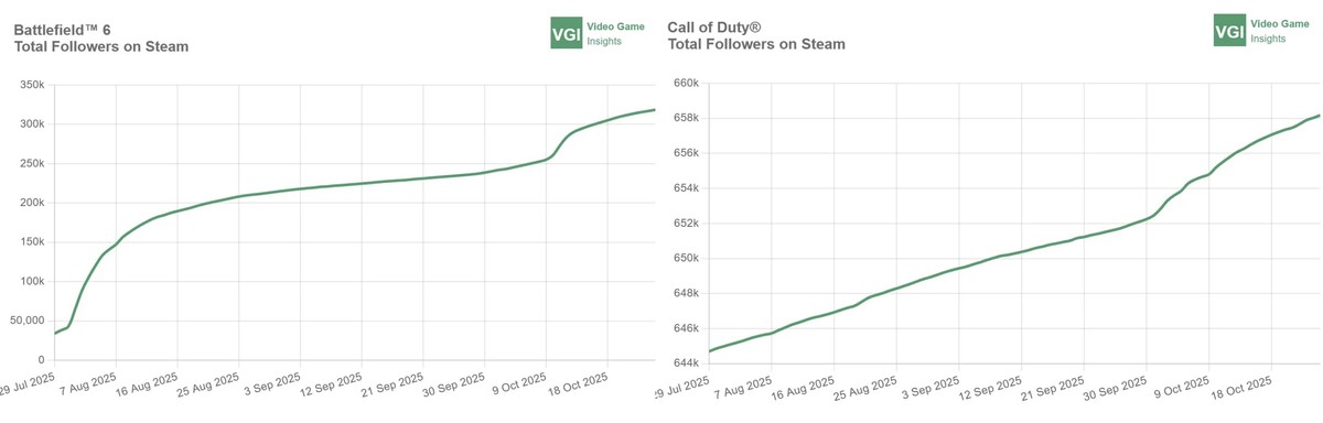 Аналитик также указал на важный нюанс – у игр Call of Duty на ПК есть собственный лаунчер, так что полные данные о продажах недоступны, и не все пользователи ПК приобретают игру через Steam. Кроме того, Black Ops 7 будет доступна с первого дня в PC Game Pass, стоимость которого недавно выросла. Данные VGI показывают, что у франшизы Call of Duty в целом около 658 тысяч подписчиков в Steam – примерно вдвое больше, чем у Battlefield 6.