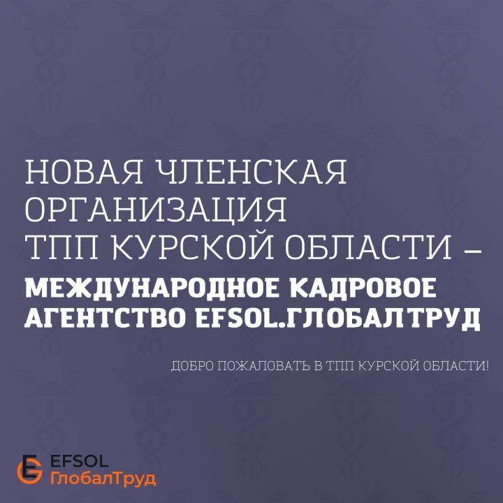 Новая членская организация ТПП Курской области — международное кадровое агентство Efsol. ГлобалТруд