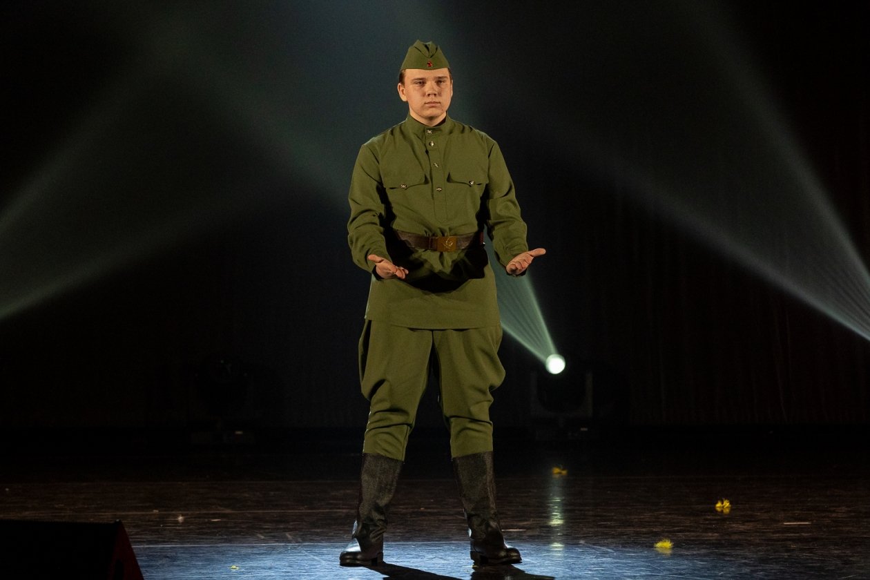В итоге "Поющие непоседы" вышли на сцену, представив военно-патриотический номер "Шли солдаты на войну".