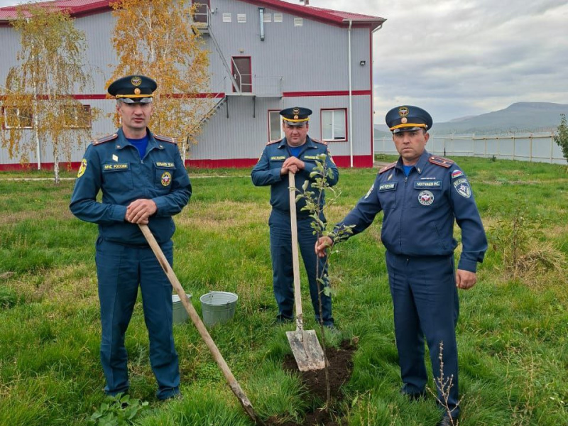 В Малокарачаевском пожарно-спасательном гарнизоне прошла экологическая акция по посадке садовых деревьев. Мероприятие было приурочено к 35-летию МЧС России и 100-летию со дня создания органов государственного пожарного надзора. Каждое дерево стало символом вклада людей, стоявших у истоков создания, становления и развития чрезвычайного ведомства.