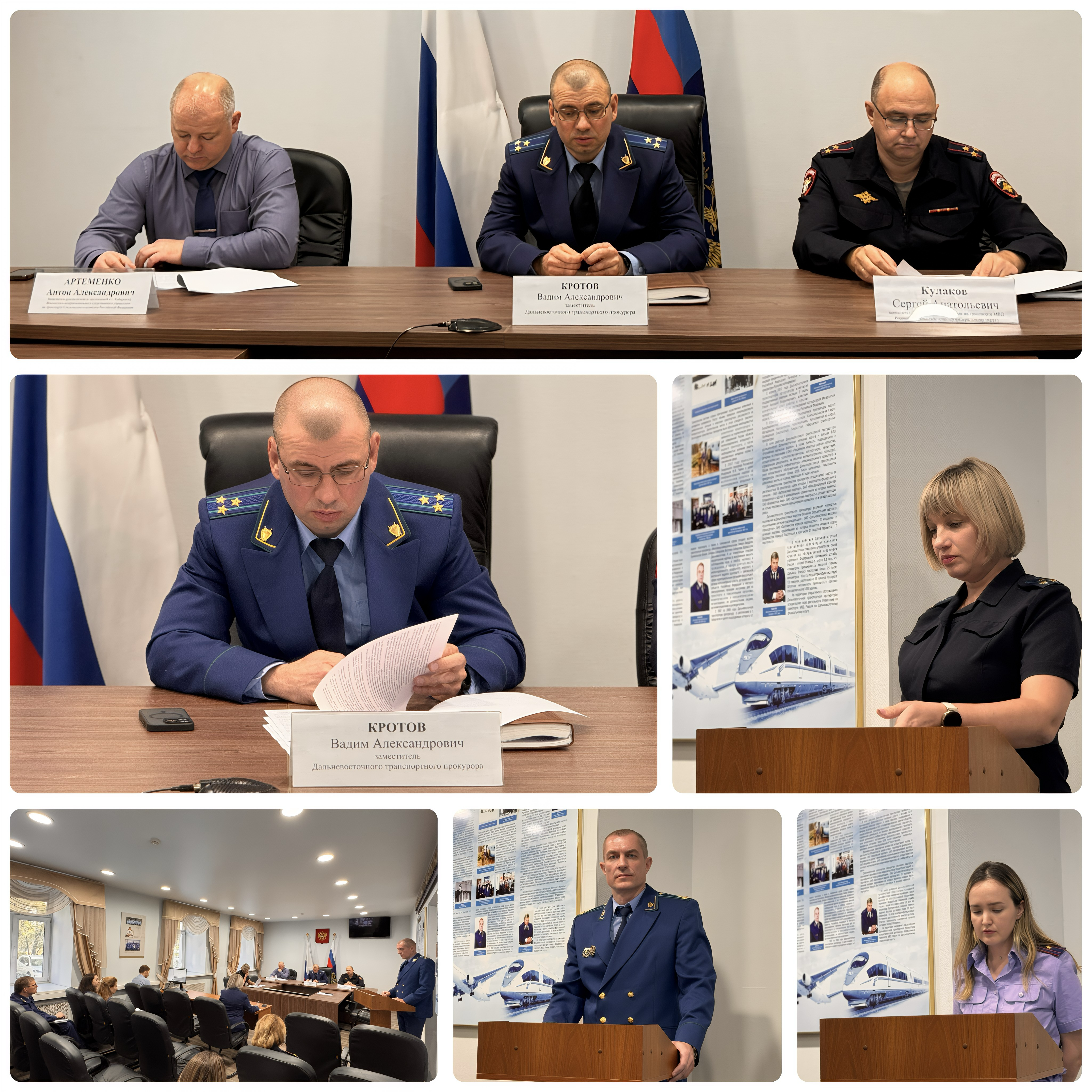 В мероприятии приняли участие представители Управления на транспорте МВД России по ДФО, Дальневосточной оперативной таможни, Восточного межрегионального следственного управления на транспорте СК России, работники аппарата Дальневосточной транспортной прокуратуры и транспортные прокуроры (на правах районных).