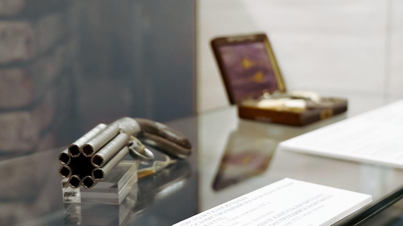 Среди экспонатов выставки можно будет увидеть необычные конструкторские решения: револьвер-кастет с откидным штыком, двуствольный пистолет-кинжал и стреляющую авторучку.