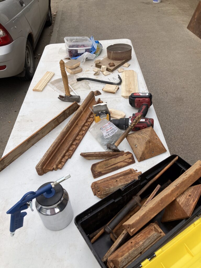Второй в этом сезоне объект, на который переключились волонтеры, — дом 1872 года постройки. Сотрудники офиса, находящегося на первом этаже, на связь не вышли, поэтому цоколь остался нетронутым. Занялись старинной дверью и вторым деревянным этажом, где расположена коммуналка с четырьмя жильцами.