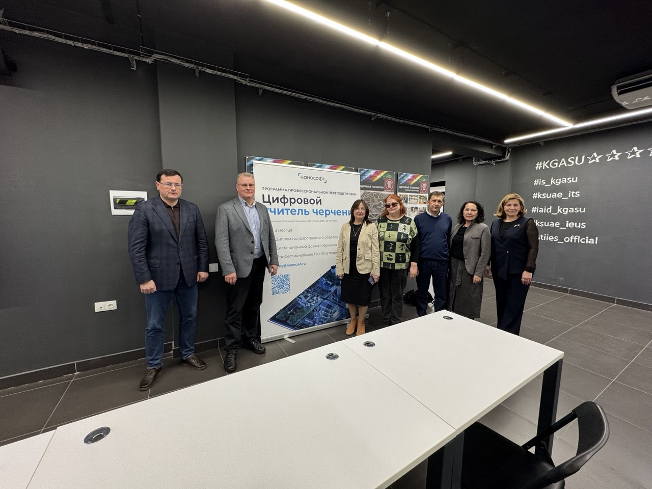 28 октября 2025 года в научно-образовательном центре КГАСУ «Цифра» состоялось торжественное открытие программы профессиональной переподготовки «Цифровой учитель черчения» в Республике Татарстан». Проект реализуется во исполнение поручения Президента Российской Федерации от 04.04.2023 г. № Пр-1118ГС по инициативе компании «Нанософт» при поддержке Правительства Республики Татарстан и Министерства образования и науки Республики Татарстан.