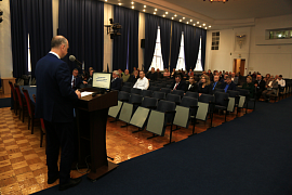 С докладом «О выполнении эффективного контракта ППС» выступил первый проректор член-корреспондент РАН С.В. Кузьмин. Сергей Викторович представил показатели работы ППС за три года, подробно остановившись на работе деканов и заведующих кафедрами.