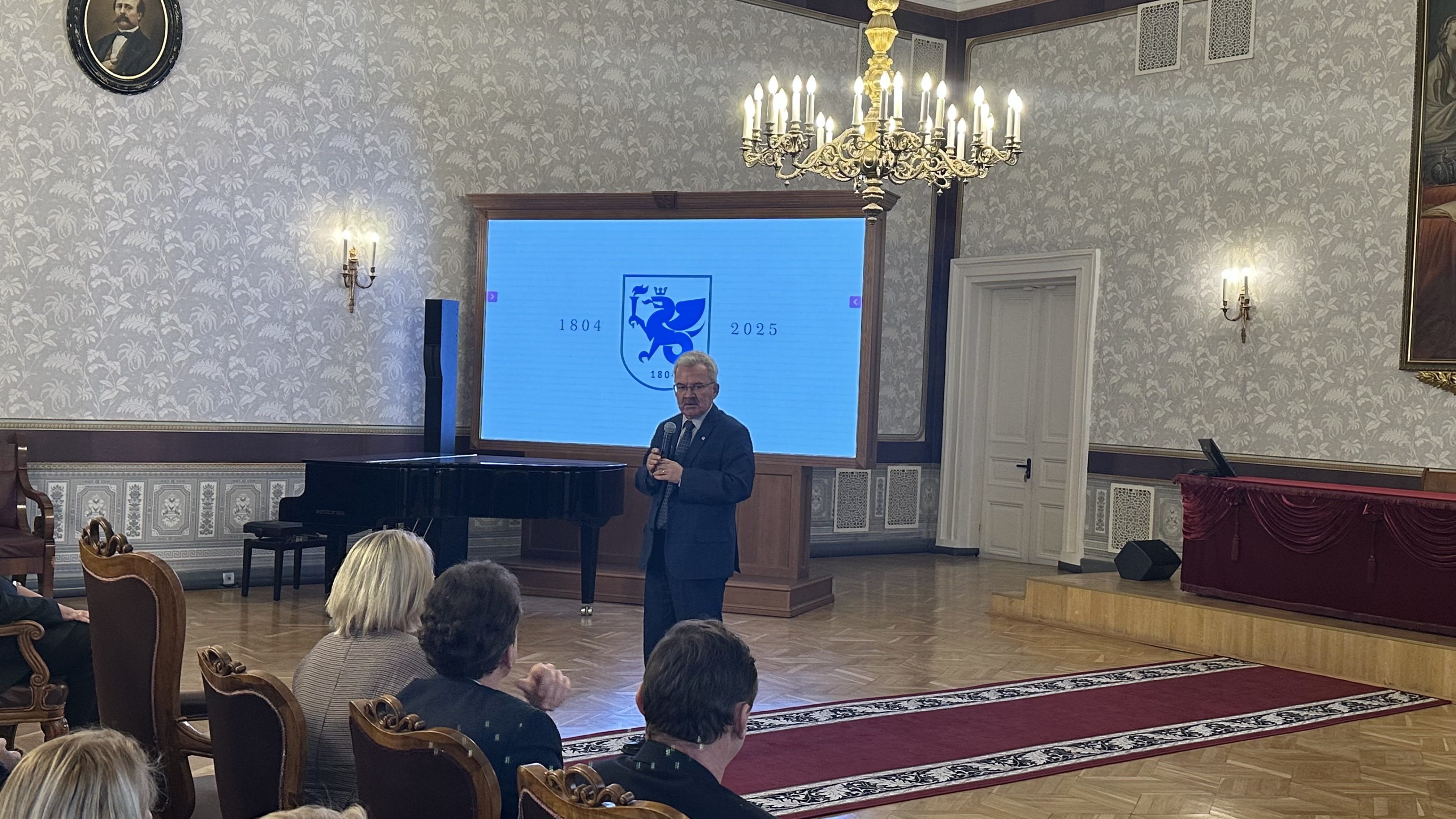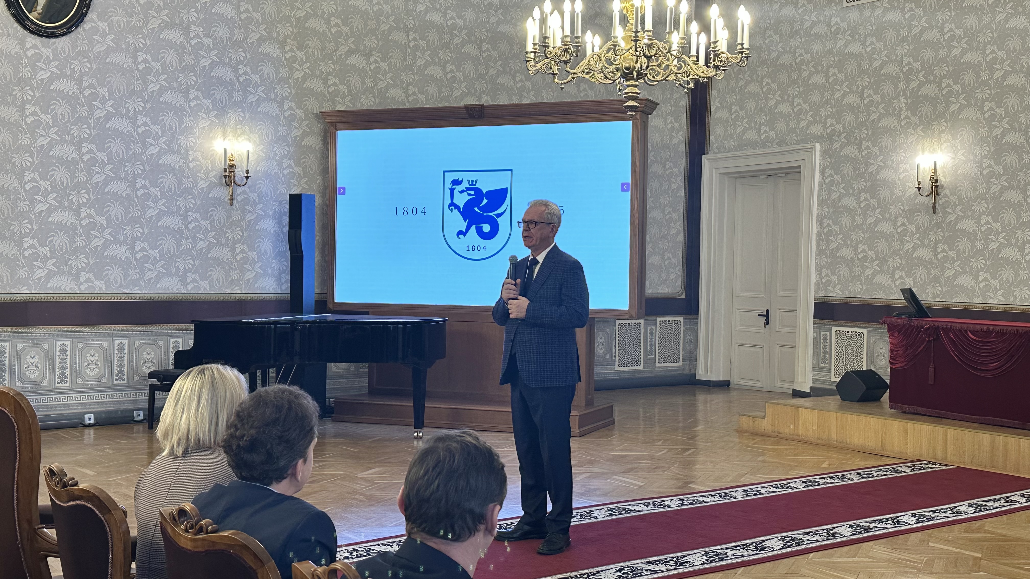 «Здесь лучшие из лучших, выпускники 2025 года и прошлых лет, и я думаю, те, кто продолжит традиции казанских научных школ, которые были созданы или развивались в университете, и те, кто станут основоположниками новых направлений и научных школ», – выступил А. Поминов.