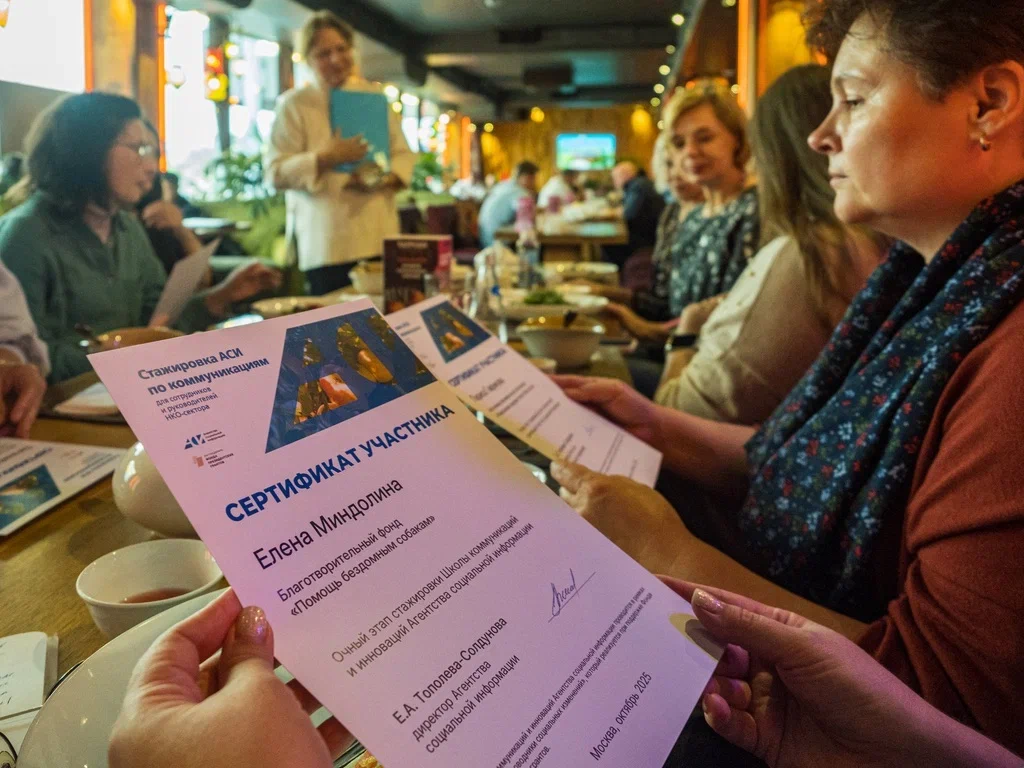 Каждый год АСИ организует Школу коммуникаций и инноваций. Она проходит в два этапа: сначала участников ждет образовательный онлайн-блок, а после — очная стажировка для самых замотивированных слушателей. В 2025 году отбор прошли 10 специалистов некоммерческого сектора из разных городов России.