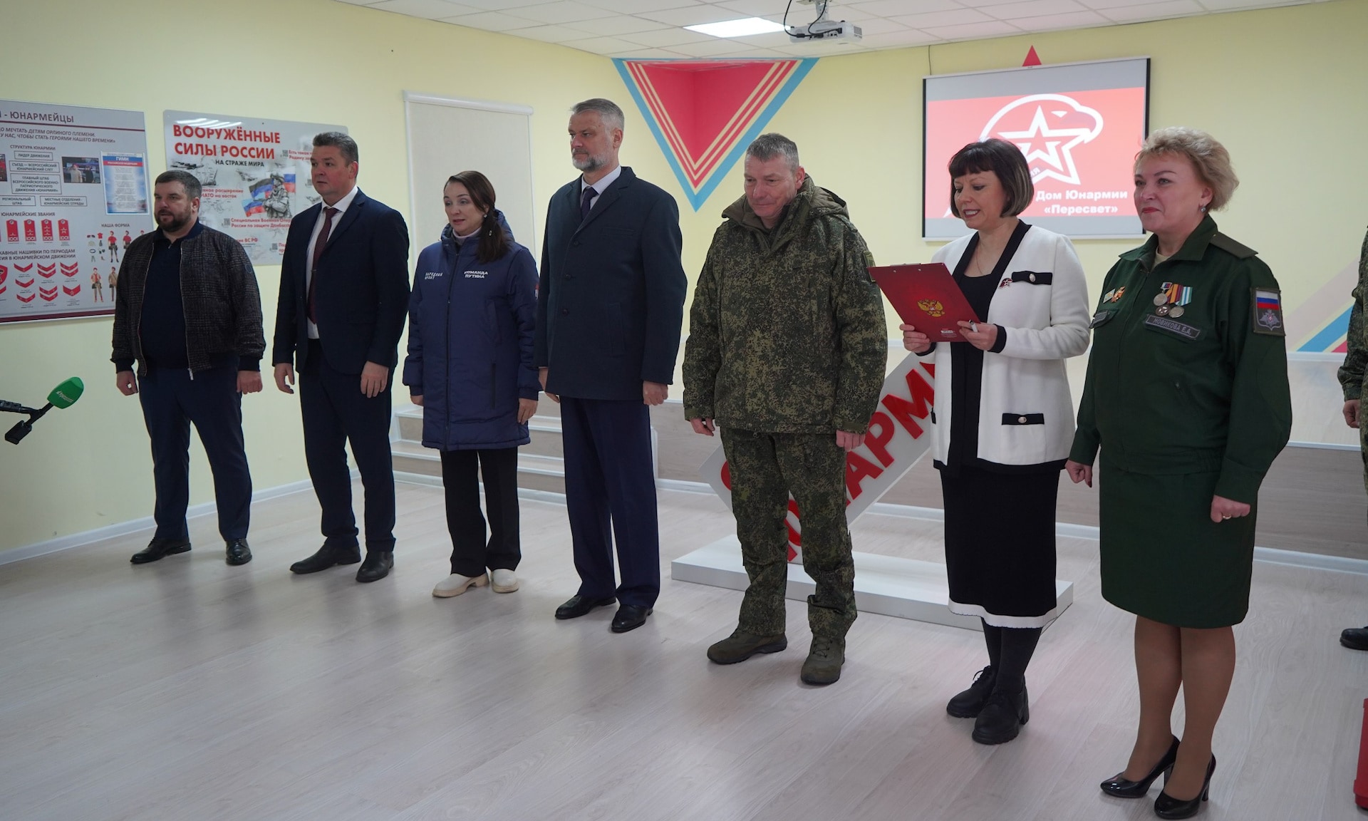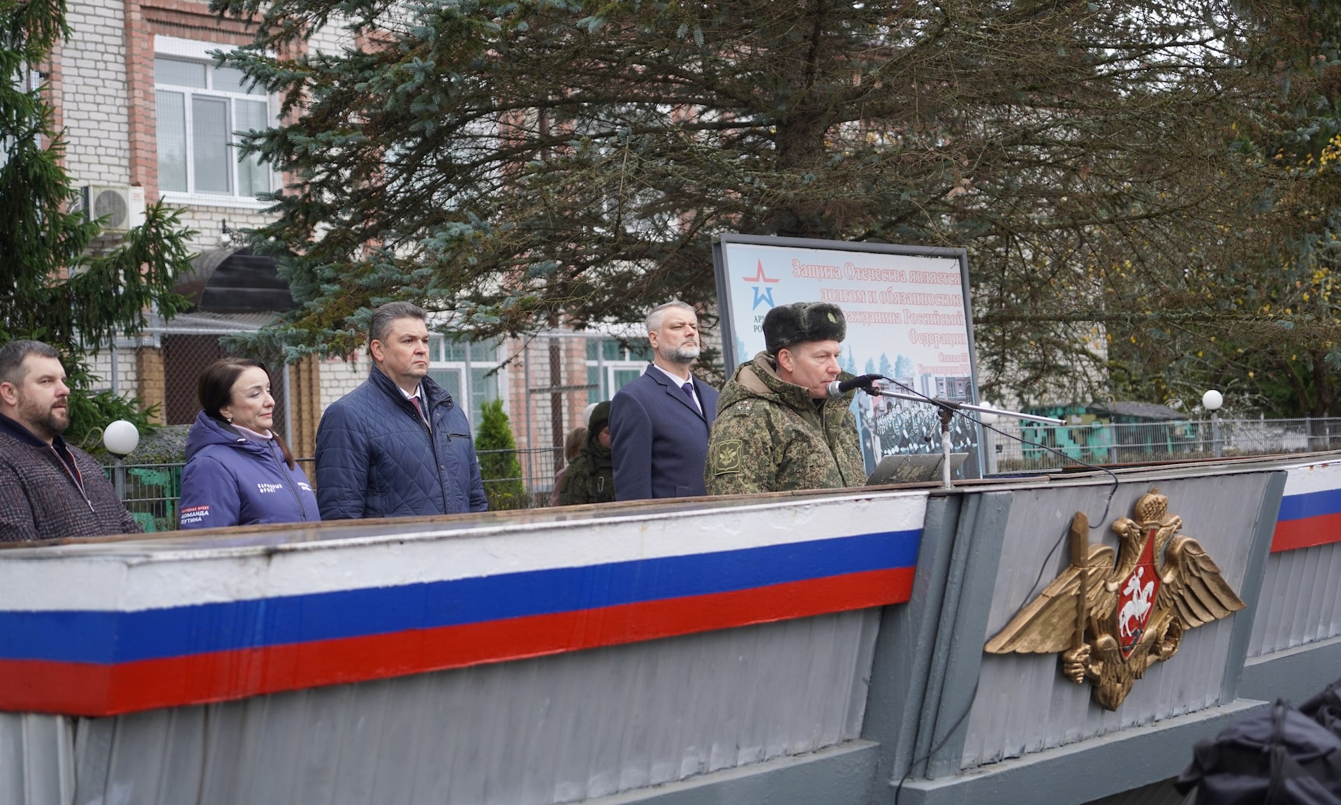 Передать слова приветствия военнослужащим приехали заместитель Губернатора Алексей Жук, главный федеральный инспектор по Брянской области Андрей Дьячук, руководитель регионального исполкома Народного фронта в Брянской области Лариса Третьякова, командир воинской части, полковник Тимофей Гончаров, учредитель компании «Дорстрой 32» Валерий Коваленко.