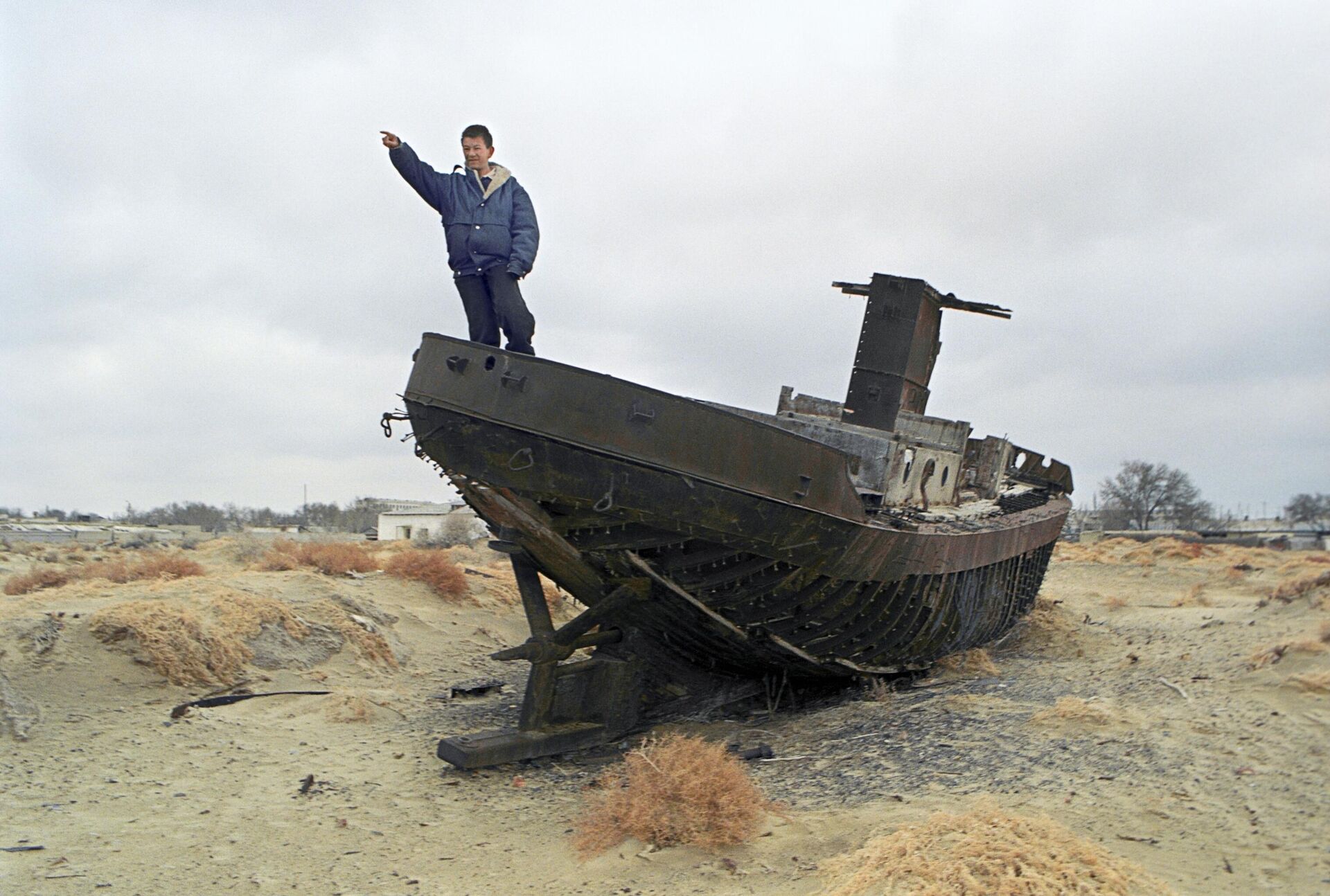 Житель на месте, где когда-то было Аральское море, архивное фото