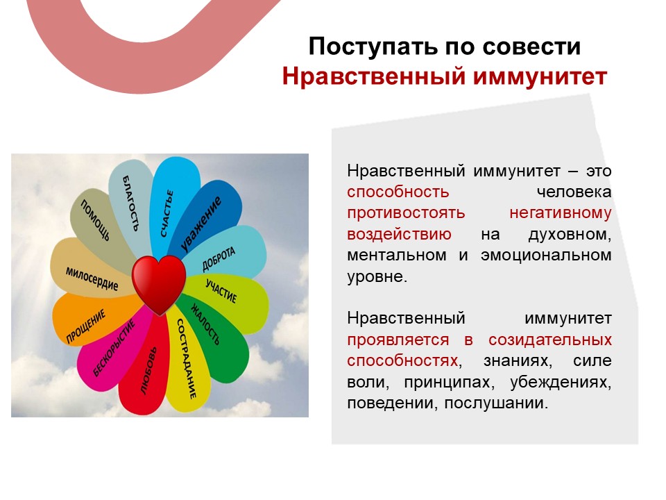 И вот посмотрите, сколько разных составляющих у понятия «нравственный иммунитет, которые влияют на наше состояние, возможность сопротивляться злу, лжи, недобрым поступкам.